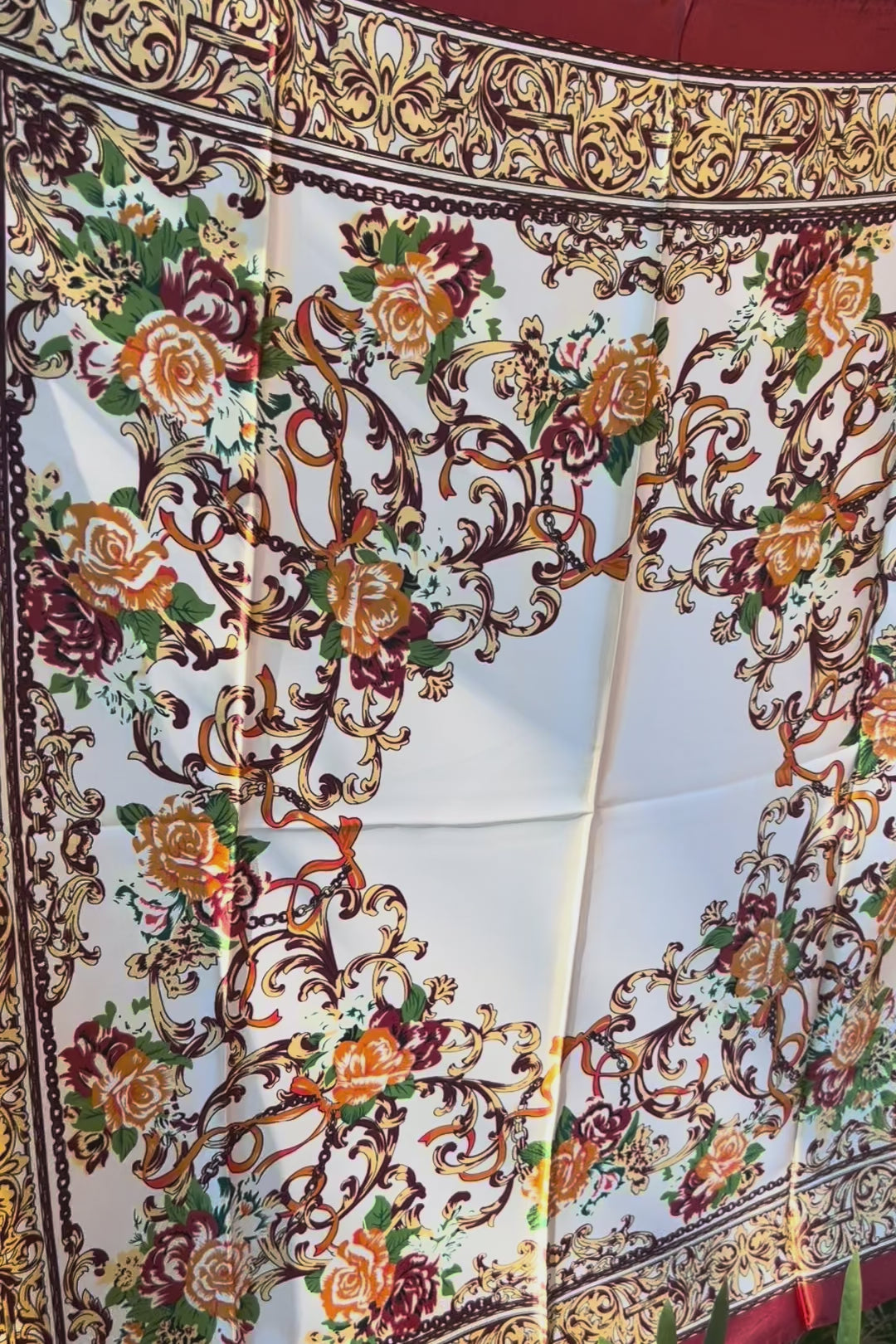 The Monarch Rose Scarf – Baroque Floral Satin Scarf Australia